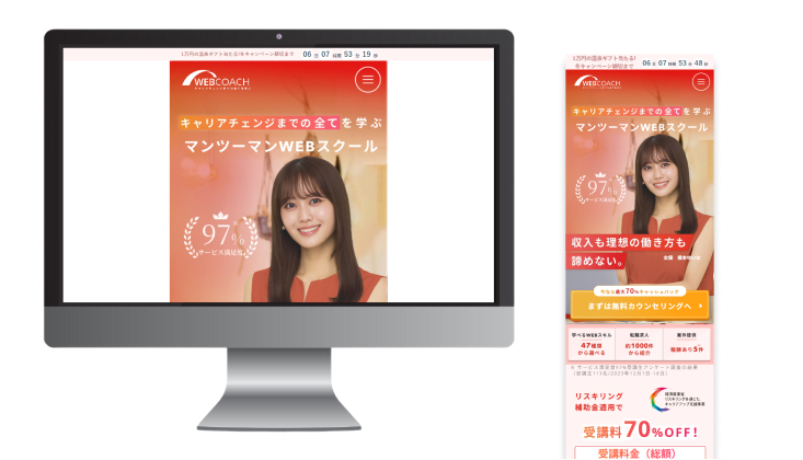 WEBCOACH は、キャリアチェンジまでの全て を学び理想の”収入と働き方”、どちらも叶えるためのマンツーマンWEBスクール です。
